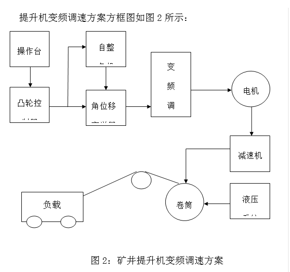 通過(guò)調研與論證,結合本公司礦井提升的現場(chǎng)實(shí)際情況,最終我公司技術(shù)中心做出決定,對提升機實(shí)施變頻調速改造,利用在機械行業(yè)中廣泛使用的自整角機來(lái)作為控制變頻器的速度給定。自整角機是通過(guò)角位移變送器輸出模擬量信號,操作工人搬動(dòng)提升機操縱桿的角度,角位移變送器輸出相應大小的模擬量信號,由此控制變頻器運行頻率,進(jìn)而控制提升的運行速度。這種操作方式還可用變頻器多段速控制,提升機只能在這幾種速度下運行。而角位移變送器輸出的是連續的角位移變送器輸出模擬量信號,理論上提升機可在任意速度下運行,操作起來(lái)會(huì )方便一些,且與原操作習慣相似,操作工人容易掌握。