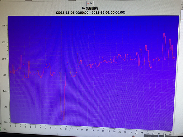 對于中金金屬燒結生產(chǎn)線(xiàn),燒結主抽風(fēng)機是其重要的生產(chǎn)設備,但是由于長(cháng)期工頻運行,為了滿(mǎn)足燒結生產(chǎn)過(guò)程中所需要的風(fēng)量、負壓,燒結主抽風(fēng)機只能通過(guò)閥門(mén)調節的方式來(lái)改變官網(wǎng)的特性曲線(xiàn)來(lái)維持生產(chǎn),實(shí)際運行壓力15KPA,實(shí)際運行風(fēng)量500000(m3/h)實(shí)際運行風(fēng)門(mén)開(kāi)度約85%,實(shí)際工頻運行的電流可達到200A,見(jiàn)圖1。