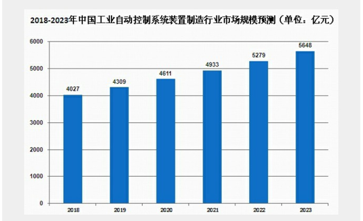 從大環(huán)境來(lái)看,產(chǎn)業(yè)升級、民生訴求和節能環(huán)保三大因素將給未來(lái)工業(yè)自動(dòng)控制系統在新興領(lǐng)域市場(chǎng)發(fā)展創(chuàng )造更多的發(fā)展機會(huì )。預計未來(lái)幾年市場(chǎng)銷(xiāo)售規模增速保持在7%左右,到2023年行業(yè)銷(xiāo)售規模有望超過(guò)5600億元。